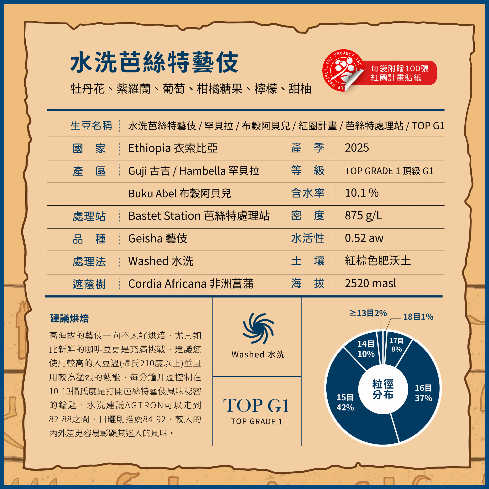 來自衣索比亞古吉高地罕貝拉山區的 Buku Abel 芭絲特藝伎 – 紅圈計畫,採水洗處理,呈現極致乾淨與優雅,每批皆帶有花香、果酸與甜感的完美平衡。